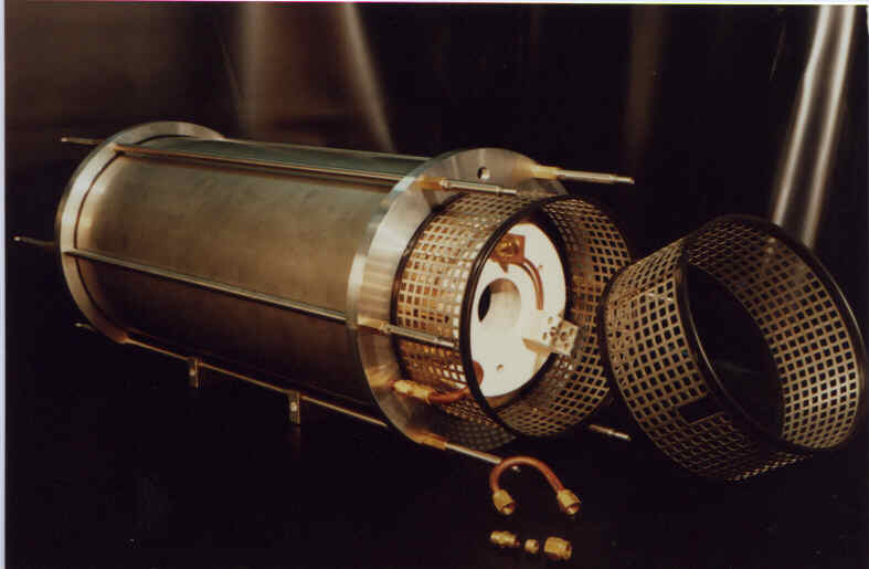 gebaut für den SFB 173 im Institut für Physikalische und Elektrochemie der Universität Hannover. Zum Aufheizen von Proben auf ca. 1000-1200°C. Durch den einfachen Aufbau, leichtes erneuern der Verschleißteile.